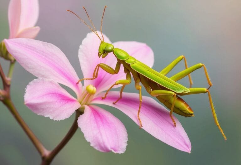 The orchid mantis, native to Southeast Asia, mimics flowers to hunt insects, blending in with colors like pink and brown for effective camouflage.