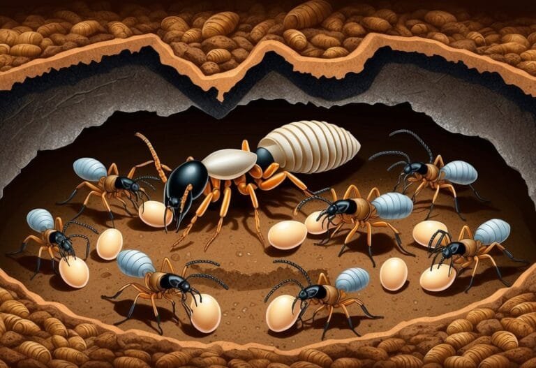 Termite queens, pivotal to their eusocial societies, lay thousands of eggs daily, produce millions over decades, and are supported by workers and soldiers.