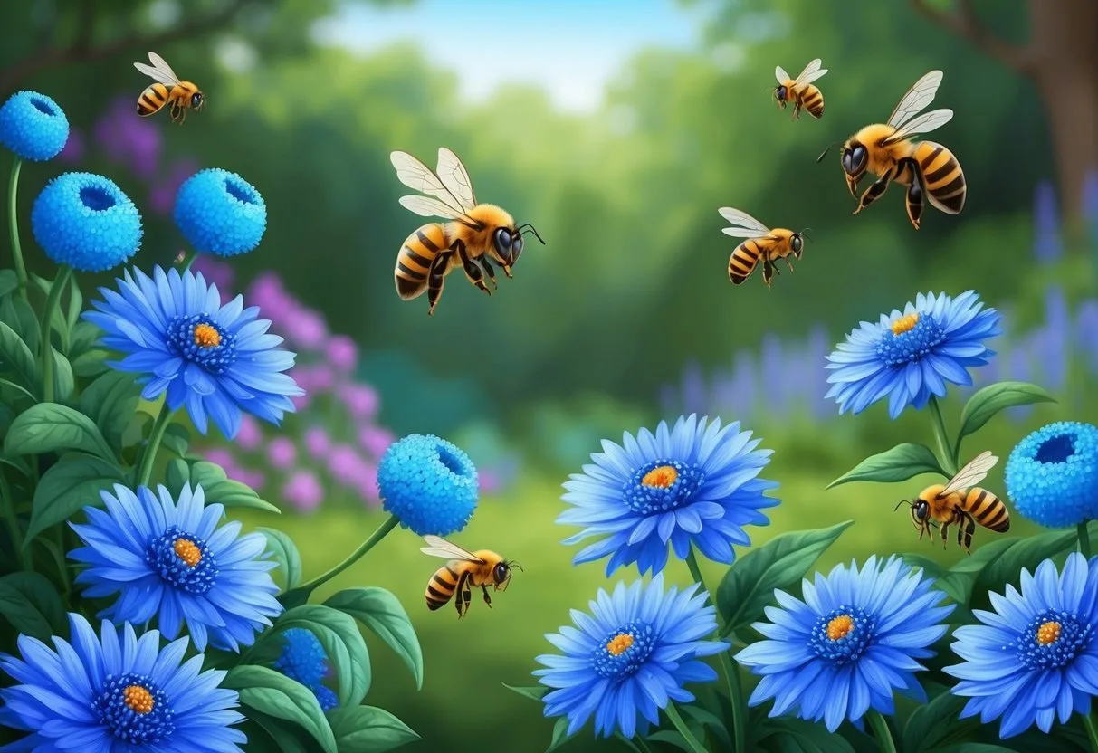 Some areas have plants that can make blue honey. This rare type needs special flowers or other food sources.