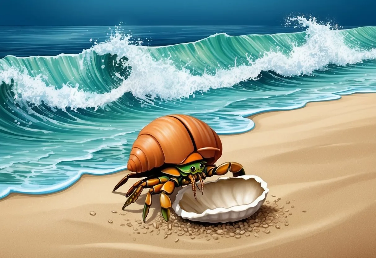 Hermit crabs are famous for using empty shells as homes. They protect their soft bodies by moving into abandoned shells. As they grow, hermit crabs switch to bigger shells.