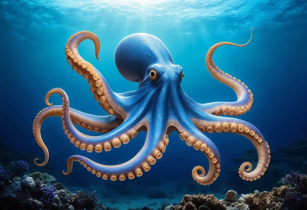 Sometimes, the octopus pretends to be a plant. It might stretch out its arms to look like seaweed moving in the water. This clever disguise keeps it safe from animals that might want to eat it.