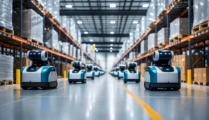 Robotics in warehouses reduce severe injuries by 40% but increase minor injuries by 77%, due to heightened productivity demands and repetitive tasks during peak periods.